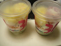 サイトを見たときから、ポッピングシャワーっていうのと、ダイキュリーアイスっていうのを食べたかったんですけど、そのダイキュリ何とかはもう品切れとか言われて、しかも一つだけ持ち帰るとか恥ずかしいので2カップ注文しなきゃいけなくなって、さらに間が悪いことに、トリプルにチャレンジできますとか言われて、都合、6色選ばなきゃいけなくなって大変でした。